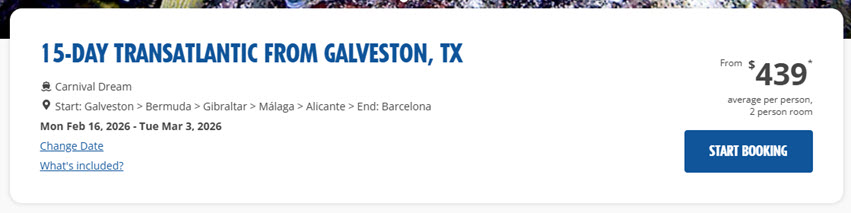 For those wondering, “Is buying 100 shares of Carnival stock worth it?”, here’s an example. Let’s say you’ve been thinking about that fantastic deal on the 15-day transatlantic on Carnival Dream… That one sailing would earn you $250 OBC in benefit alone. At today’s stock price, that’s nearly a 10% return on your investment in just a single cruise!