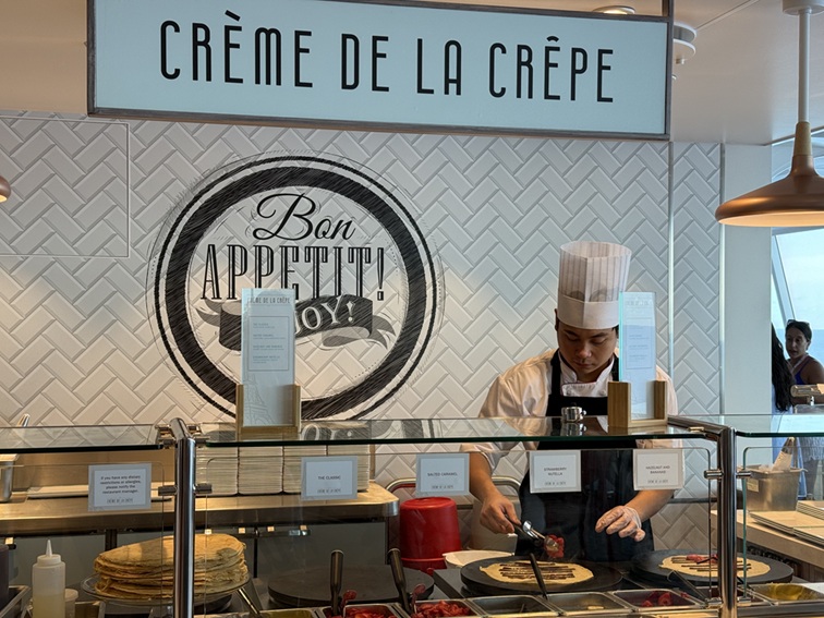 The quick, fast-casual grab-and-go options are typically the spots we enjoy the most for breakfast and lunch on our cruise. Sure, you won’t have the variety of the buffet, but the options here are typically made to order versus sitting out in serving trays. Many of the cruise lines offer a burger bar, Mexican food stand, pizza, deli sandwiches, and more. Some examples include: