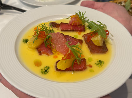 Some cruise lines offer a Brunch option on sea days with extended seating times going into the early afternoon. The Brunch menu has a larger variety of offerings with steak and eggs, pasta dishes, and more. If your cruise line/ship doesn’t offer brunch on sea days, you may instead find lunch in the main dining room. This menu usually reflects faster service options like burgers, pastas, salads, and soups. Occasionally, you’ll find some special dishes in there as well, so it may be worthwhile to check the menus ahead of time.