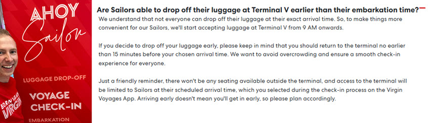 Here’s everything we know about Virgin Voyages early bag drop across their major homeports. While we’ve taken advantage of this service in multiple ports, we also relied on YOUR reports on various forums and groups to compile a complete list of ports.